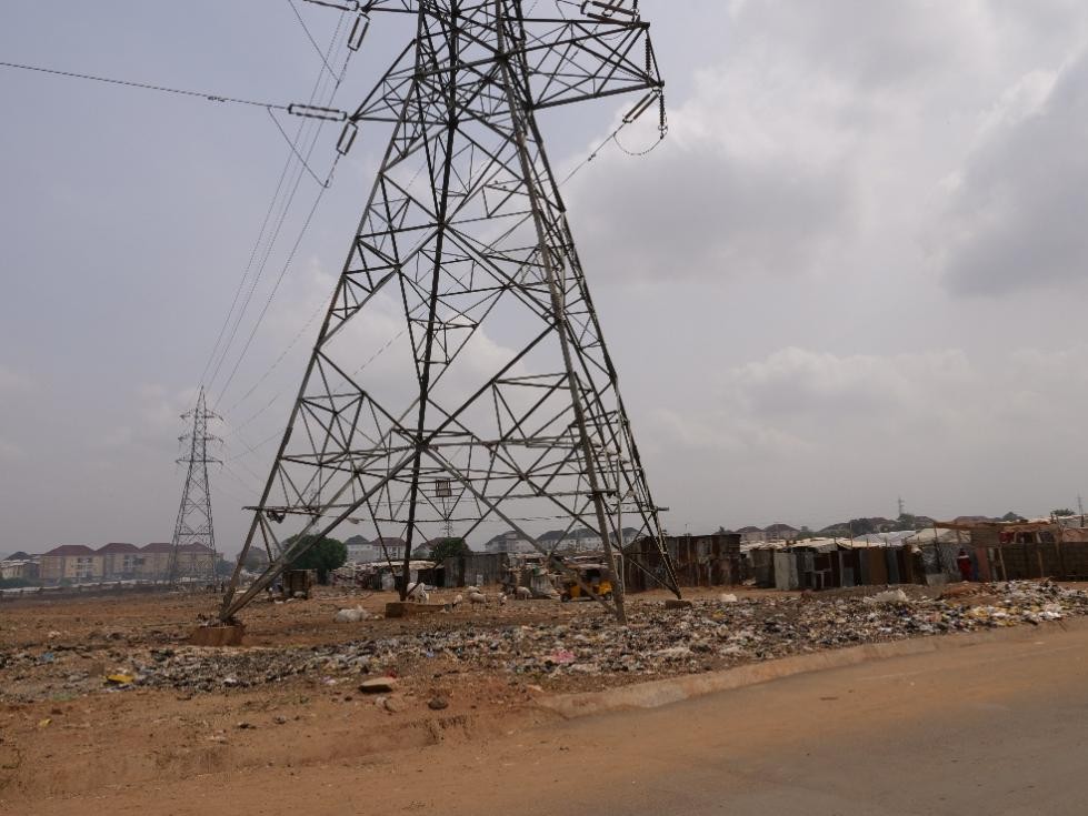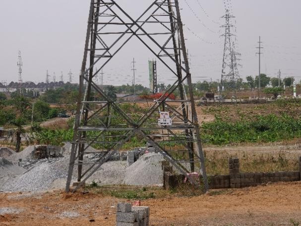 In Tundunwada settlement, Lugbe, Abuja, which is home to the nearly completed 330/132/33kV Lugbe West Main Transmission Substation, RoW violation is a norm. Two ongoing transmission lines converge here; the Ajaokuta-Gwagwalada 330kV transmission line meant to supply the Lugbe Substation, and the 132kV transmission line from the substation that will supply power to the Kukwaba 132/33kV Transmission Substation. Sadly, the base of some of the towers along the line route are already burdened with structures and trading activities.